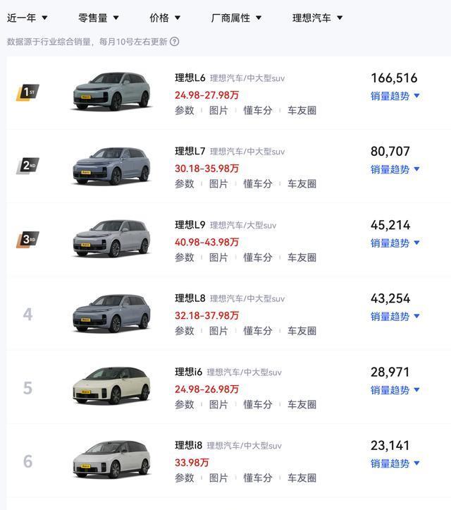 第二,理想去年想要向纯电车型转型,但纯电车型市场的竞争其实更加激烈,特别是理想i6作为主力,要面临小米YU7、特斯拉Model Y等热门车型,胜算其实并不高,数据显示理想i6是去年12月销量最高的理想汽车,但销量也只有一万六左右,而理想L6的销量则是下滑到了一万二。